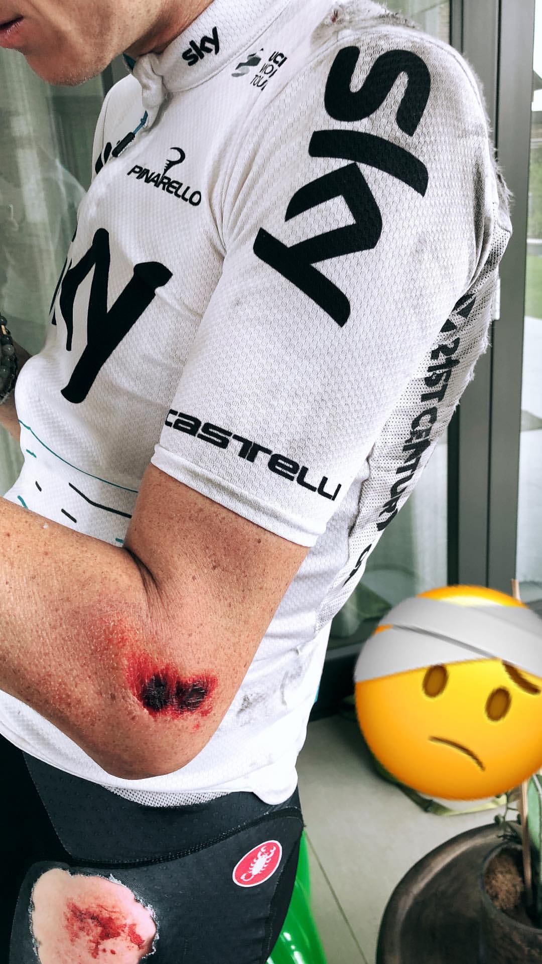 Chris Froome sta continuando ad allenarsi a Johannesburg (Sudafrica). I ritmi del vincitore degli ultimi tre Tour de France sono davvero molto intensi, un modo per mantenersi impegnato in attesa della sentenza di Losanna sulla non negatività al salbutamolo. Il kenyano bianco è però caduto proprio in allenamento: ha battuto pesantemente la parte sinistra del corpo, escoriazioni evidenti sia al gomito che all’anca come dimostra la foto postata su Instagram. Un inizio di stagione complicato per il britannico che sta cercando la migliore forma in vista del debutto in gara previsto a inizio febbraio, sempre se non arriveranno prima delle decisioni sul caso doping.