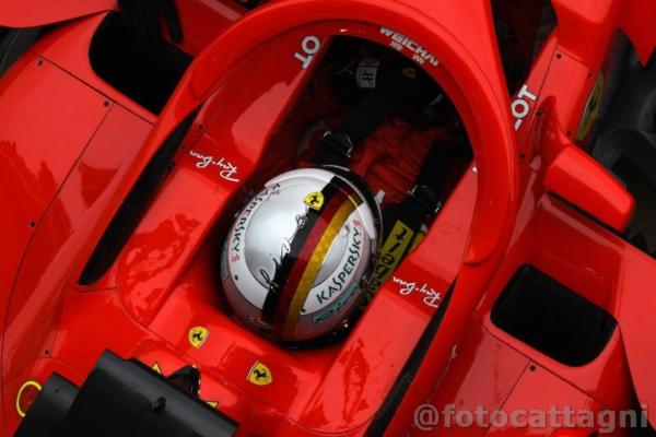 09.36 Ecco una bella inquadratura frontale della Ferrari di Sebastian Vettel.