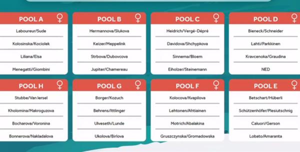 In campo femminile montagna alta da scalare per Menegatti/Giombini che sono state inserite in tabellone nell’ultimo gruppo di coppie da sorteggiare. le azzurre sono state inserite nella Pool A assieme alle teste di serie numero uno, le tedesche Laboureur/Sude, le polacche Kolosinska/Kociolek e le spagnole Liliana/Elsa, coppia sempre difficile da affrontare.