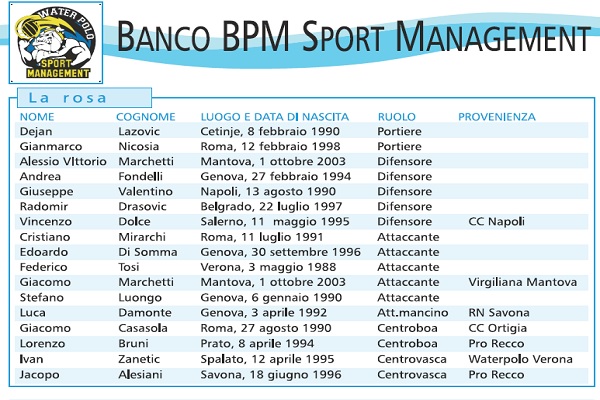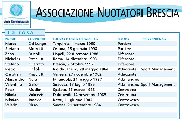 Due innesti, entrambi italiani, ed entrambi dalla BPM per provare a colmare il gap con la Pro Recco: sbarcano a Brescia Pietro Figlioli e Valentino Gallo. Appare più probabile che i lombardi continuino a battagliare proprio con la BPM per la piazza d’onore.