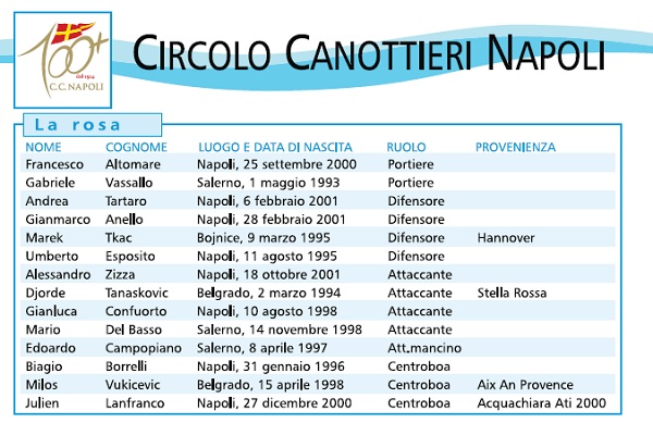 L’arrivo del croato Marko Bijac ha rafforzato ulteriormente una rosa dominante in Italia e molto competitiva in Europa. Torna in Patria Vincenzo Renzuto Iodice, mentre un altro azzurro, Alessandro Velotto, sposa la causa ligure. Sicuramente sarà la squadra da battere, ma forse a Recco si punta più alla Champions…