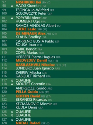 IL TABELLONE MASCHILE DEL ROLAND GARROS 2019