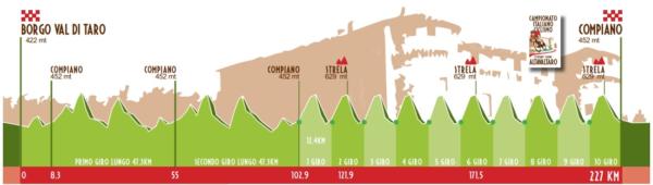 Si concluderà domani, domenica 30 giugno, il Campionato Italiano di ciclismo 2019 di scena nella Val di Taro, regione dell’Appennino emiliano in provincia di Parma. Dopo la cronometro vinta da Filippo Ganna, toccherà alla prova in linea, appuntamento particolarmente intrigante in questa edizione per la durezza del percorso e per la presenza del meglio del movimento italiano. Il tracciato di 227 km da Borgo Val di Taro a Compiano è disegnato appositamente per gli scalatori con quasi 4000 metri di dislivello e per Elia Viviani sarà praticamente impossibile difendere la maglia tricolore.