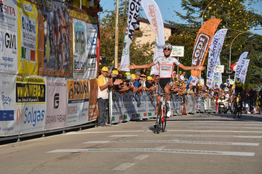 Ben 176 i corridori allo start. La prima parte della gara è stata caratterizzata da una fuga di sette corridori: Matteo Zandomeneghi (Iseo Rime Carnovali), Nicola Venchiarutti (Cycling Team Friuli), Simone Innocenti (Gallina Colosio Eurofeed), Davide Scandiuzzi (Northwave Cofiloc), Emanuele Ansaloni (Inemiliaromagna), Stefano Baffi (Cycling Development Guerciotti) e Matteo Donegà (Cycling Team Friuli). I battistrada hanno presto raggiunto un vantaggio massimo di 5’50”, con Matteo Donegà a fare incetta di traguardi volanti. Col passare dei chilometri perdono contatto Innocenti e Scandiuzzi, al comando rimangono in cinque. La situazione vede il grosso del plotone in forte rimonta con il drappello dei fuggitivi che man mano perde unità; fino a quando al km 122 il solo Nicola Venchiarutti (Cycling Team Friuli) riesce a tenere la testa, fino alla resa al chilometro 138 di gara. Inizia l’ultimo passaggio della salita che porta al monumento di Casartelli e al comando si forma un drappello composto da Olzhas Bayembayev (Astana City), Fabio Mazzucco (Sangemini – Trevigiani), Riccardo Verza (Zalf Euromobil Desiree Fior) e Francesco Di Felice (General Store-Essegibi-F.lli Curia). Su di loro si rifanno sotto poco dopo Evgenii Tikhonin (Nazionale russa) e Alessandro Monaco (Casillo–Maserati). Al suono della campana transita per primo l’abruzzese Di Felice, poi dopo il passaggio si forma un drappello di 6 corridori che diventano 17 nella discesa verso San Marco alle Paludi. La corsa entra nel vivo sulla salita finale. Attacca Filippo Zana, che prova l’allungo. Sul muro finale il portacolori della Sangemini-Trevigiani transita per primo marcato da Matteo Sobrero (Dimension Data For Qhubeka). Zana però ci riprova, guadagna 5”, su di lui arriva Kevin Colleoni (Biesse Carrera). Alle ultime centinaia di metri è un duello a due con Filippo Zana che riesce ad anticipare di qualche metro il bravo Colleoni, arrivando così a trionfare a braccia alzate. Terzo gradino del podio per Marco Murgano (Casillo-Maserati) che per una manciata di secondi non riesce a giocarsi lo sprint con gli avversari.