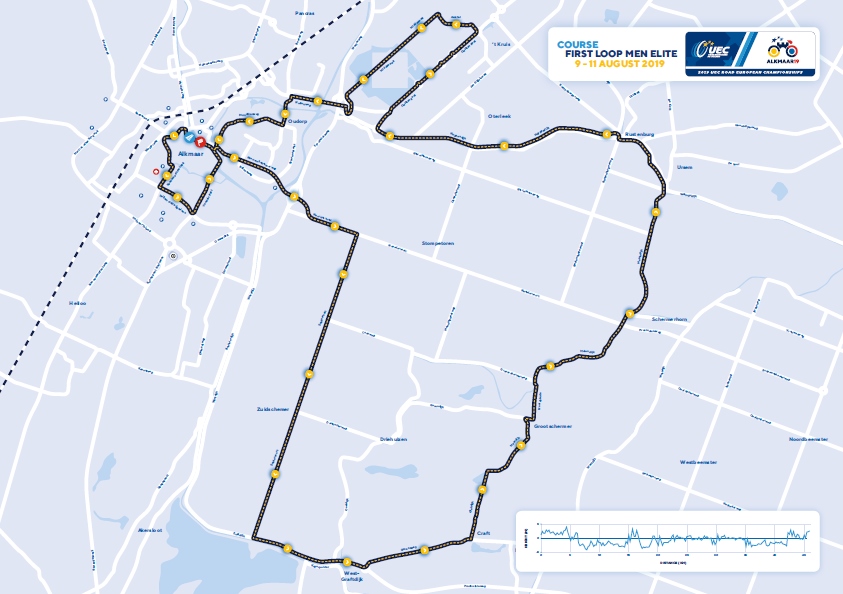 I corridori affronteranno 172,6 km con partenza e arrivo ad Alkmaar. Dopo il via ci sarà un giro lungo di 46 km che non presenta particolari insidie e in cui sulla carta potrebbe formarsi una fuga con corridori di secondo piano. Bisognerà poi percorrere 11 giri del circuito finale di 11,5 km. Un tracciato tecnico ed esigente soprattutto dal punto di vista planimetrico, visto che saranno presenti diverse curve ad angolo retto nella prima parte, che spezzeranno il ritmo. A livello altimetrico non ci saranno invece salite rilevanti, mentre la vera difficoltà sarà rappresentata dal settore di pavé di Munnikenweg, lungo 1100 metri, che terminerà a circa un chilometro dall’arrivo. Qui qualcuno potrebbe tentare il colpo di mano e sfruttare le proprie abilità in bici per sferrare un attacco e anticipare il gruppo. Se nessuno riuscirà a fare la differenza, vedremo invece un arrivo allo sprint tra i velocisti che saranno riusciti a restare al comando.