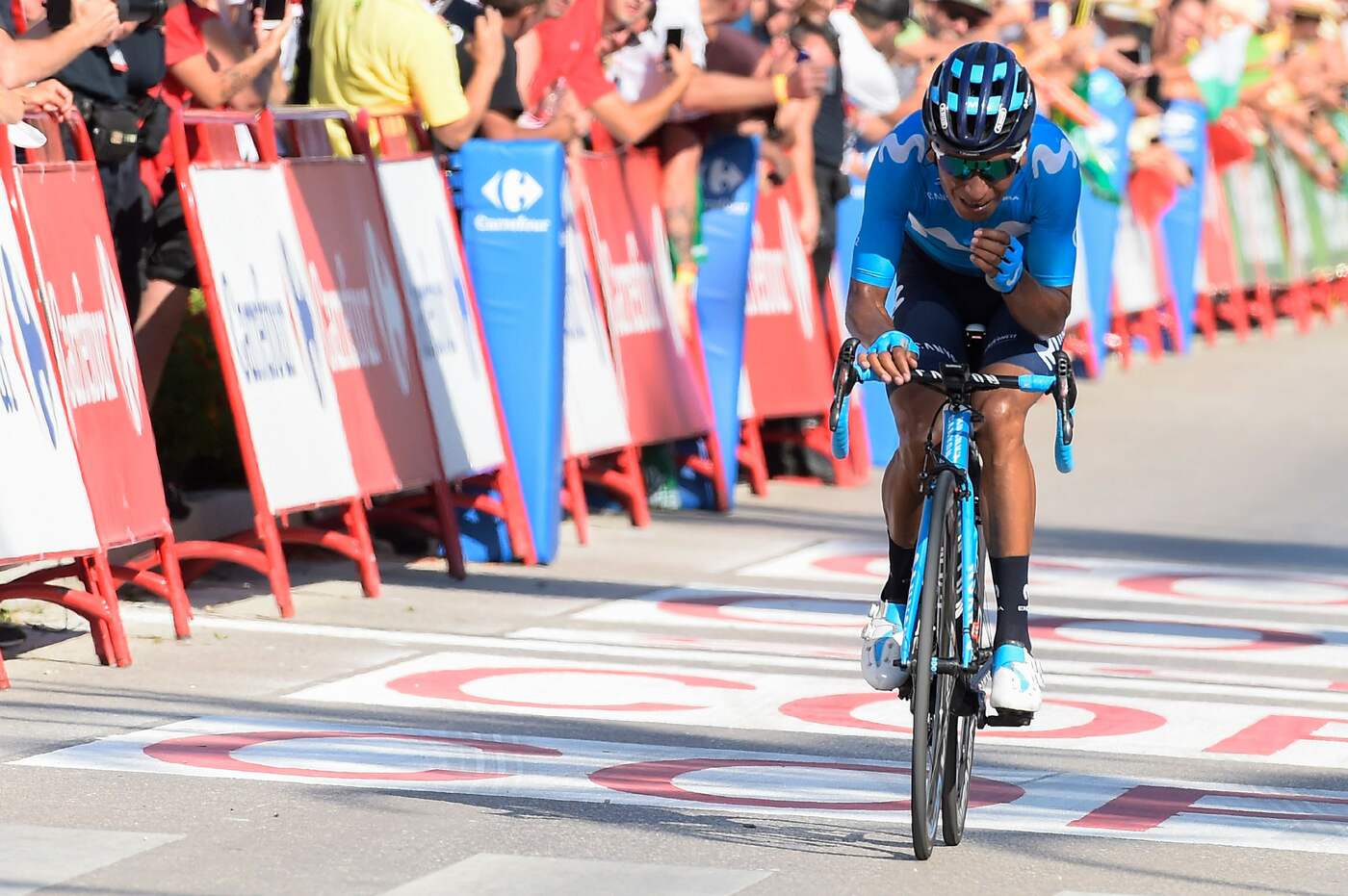 Nella discesa successiva si sono avvantaggiati in sei, tutti uomini di grandissima qualità: Fabio Aru, Nairo Quintana, Rigoberto Uran, Mikel Nieve, Primoz Roglic e Nicolas Roche. Collaborazione per loro e vittoria decisa con uno scatto di Quintana che, sfruttando anche il favore, del connazionale Uran, ha trovato il buco giusto per andar via a 3 chilometri dal traguardo trionfando a braccia alzate.