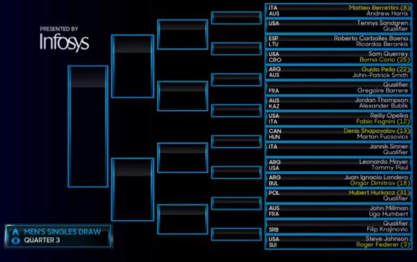 Laddove l’azzurro riuscisse a superare tutti gli ostacoli che si troverebbe di fronte sul suo cammino, potrebbe trovare Matteo Berrettini per un derby da sogno agli ottavi. Molto verosimilmente il tennista che uscirà vincente dal duello fratricida, ai quarti si troverà di fronte la montagna chiamata Roger Federer.