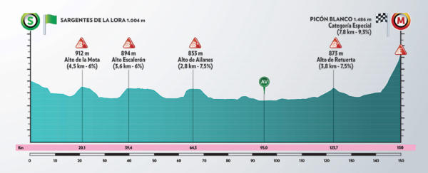 Nella frazione in programma per oggi, che si articolerà da Sargentes de la Lora fino a Picòn Blanco per un totale complessivo di 150 km, saranno disseminati lungo il tracciato ben quattro Gran Premi della Montagna che, seppur di modesta entità, influiranno sicuramente sulla condizione con cui gli uomini di classifica si lanceranno negli ultimi otto chilometri di dura salita che presenteranno pendenze anche superiori al 9%.