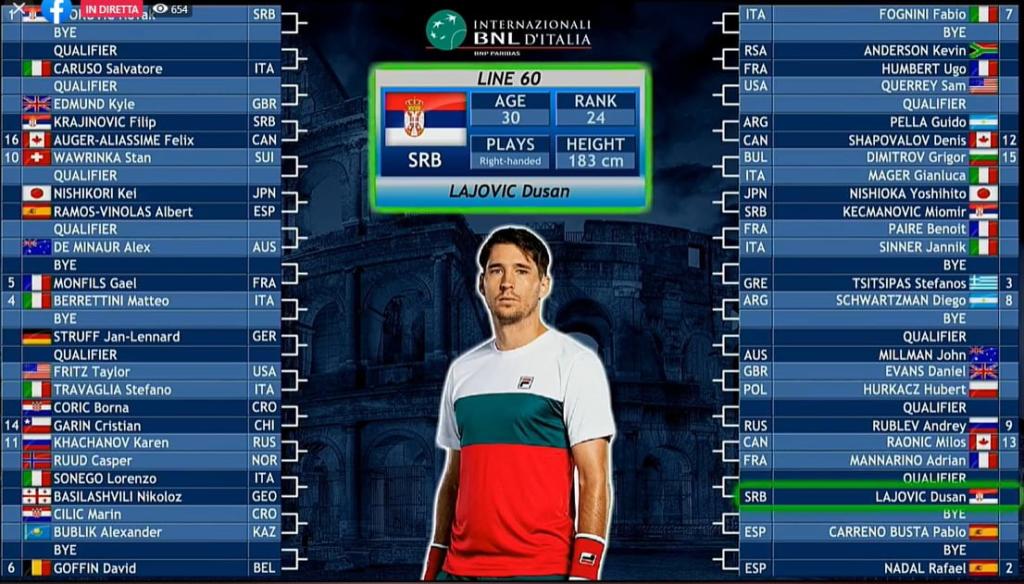 IL TABELLONE COMPLETO MASCHILE – INTERNAZIONALI D’ITALIA 2020