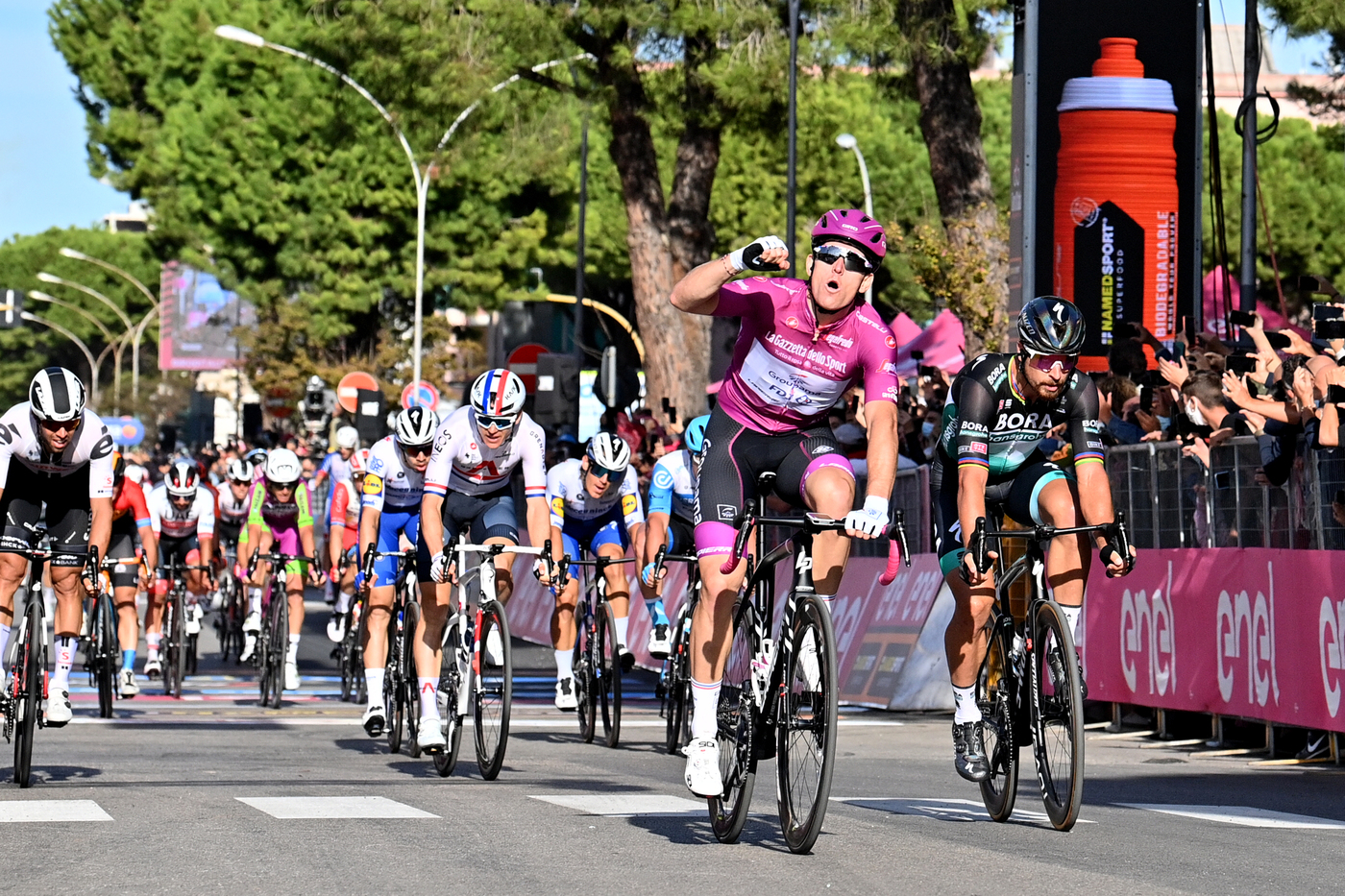Entrati in quel di Rimini grandissima battaglia tra le compagini dei velocisti per approcciare le tantissime curve presenti nel tratto finale. Perfetta però per l’ennesima volta la Groupama-FDJ che ha trascinato Arnaud Démare nella posizione perfetta per lanciare lo sprint: il francese è scattato a 200 metri dall’arrivo, bruciando ovviamente tutti i rivali. Alle spalle della maglia ciclamino c’è Peter Sagan (Bora-hansgrohe), poi Álvaro José Hodeg (Deceuninck – Quick Step) e Simone Consonni (Cofidis). In casa Italia top-10 per Stefano Oldani (Lotto Soudal), Jacopo Mosca (Trek-Segafredo) ed Elia Viviani (Cofidis), in ordine dall’ottava alla decima piazza.