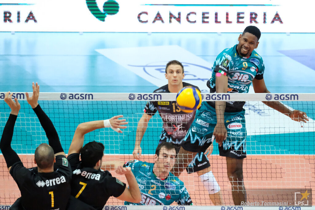 Trento parte bene nel primo set con un pallonetto di Michieletto e una pipe di Lucarelli (3-5), successivamente il diagonale di Ter Horst manda Leon in battuta e non ce n’è davvero per nessuno: tre aces del fuoriclasse per il +3 (8-5). Un primo tempo di Lisinac e un diagonale violento di Lucarelli tengono in scia i dolomitici, ma due aces consecutivi di Plotnytskyi lanciano i Block Devils (13-9). Un ottimo Lucarelli e un bel muro di Michieletto valgono il 13-12, Giannelli riacciuffa il pari a quota 16 con una sonora stampatona. Gli umbri ne hanno però di più e allungano definitivamente: bomba di Leon dalla seconda linea, primo tempo e muro di Russo, staffilata di Ter Horst e chiusura col muro di Solé.