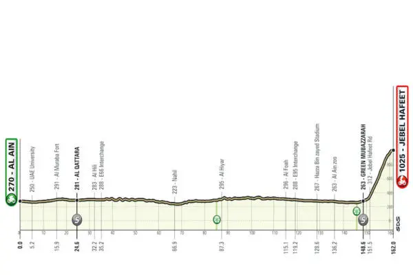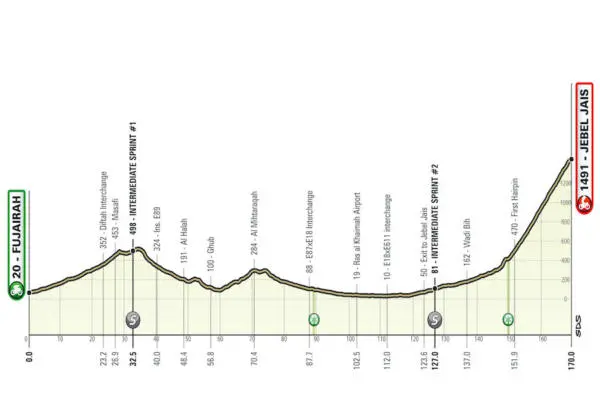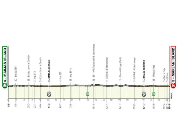 La quarta tappa, Marjan Island-Marjan Island (204 km), sarà la giornata più lunga di questo UAE Tour, nonché la più adatta alle ruote veloci del gruppo grazie al suo finale totalmente pianeggiante. Il giorno successivo sarà quello più impegnativo della corsa. Di fatti, questa quinta tappa, la Fujairah-Jebel Jais (170 km), partirà dalla città di Fujairah e si dirigerà a nord prima di terminare sull’impegnativa ascesa del Jebel Jais che culmina a 1491 metri sul livello del mare. Il tempo vinto e perso su questa lunga e implacabile salita di oltre 20 km, si rivelerà molto probabilmente decisivo per la classifica generale.