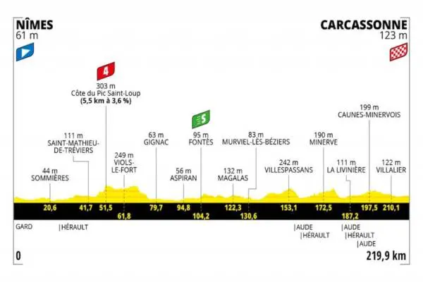Tredicesima tappa, venerdì 9 luglio: Nimes-Carcassonne, 219,9 km*