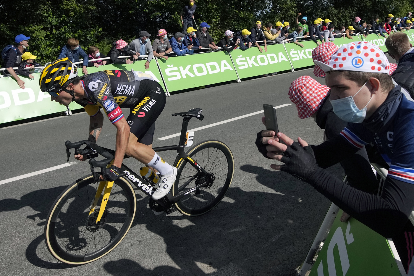 Queda de Primoz Roglic. Toque de rodas. #TDF2021 https://t.co/qLEf32iUJK