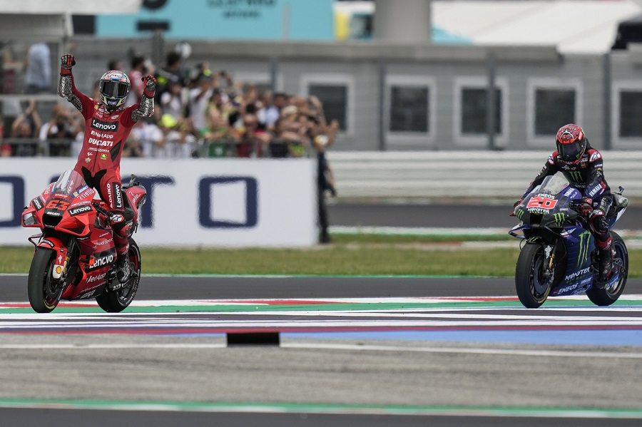 Il pilota della Ducati ha fatto tutto quello che doveva, anzi anche qualcosa di più. La seconda vittoria consecutiva in top-class, dopo quanto accaduto ad Aragon (Spagna), era tutt’altro che scontata. Il francese Fabio Quartararo, leader della classifica mondiale, era tremendamente veloce e probabilmente la strategia di una media al posteriore era la migliore.