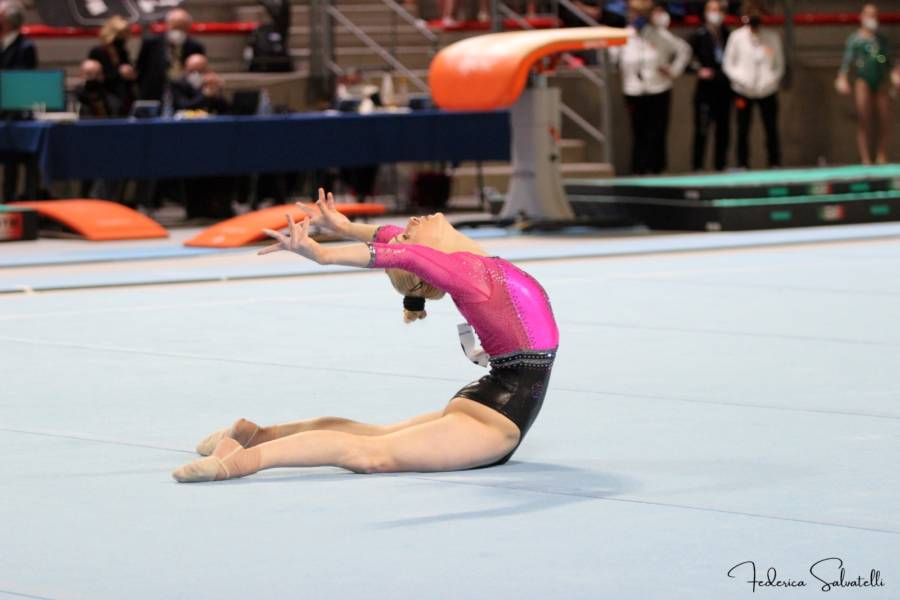 Alice D’Amato è reduce dalla bella prova offerta nella prima tappa della Serie A, andata in scena sabato pomeriggio ad Ancona. In quell’occasione l’atleta della Brixia Brescia ha eseguito un ottimo esercizio alle parallele asimmetriche (6.5 il D Score, 14.650 il punteggio complessivo), cadendo però per due volte al corpo libero (c’è stato un piccolo momento di apprensione, ma successivamente si è esibita normalmente al volteggio).