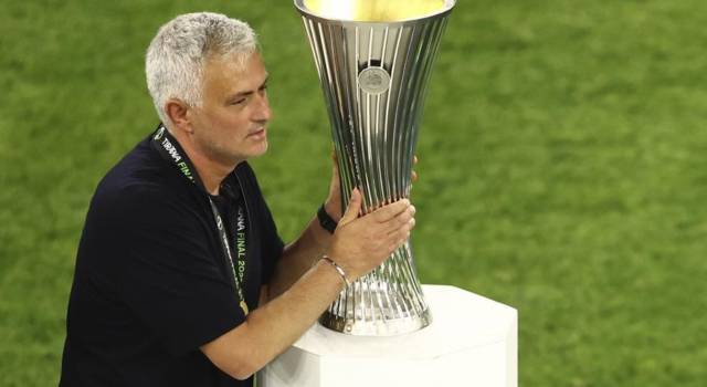 Calcio, la gioia di Mourinho dopo il trionfo in Conference League: “Abbiamo scritto la storia”