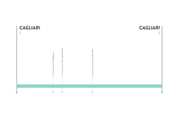 4,7 chilometri sul lungomare del capoluogo sardo. Difficoltà altimetriche non ce ne sono, sarà tutta pianura. A livello planimetrico ci sono solo tre curve: due nella parte iniziale, poi un’inversione a U da affrontare con cautela. Prova contro il tempo per specialiste, ma anche per passiste veloci capaci di rilanciare la bicicletta e tenere un passo costante per i pochi minuti dello sforzo.