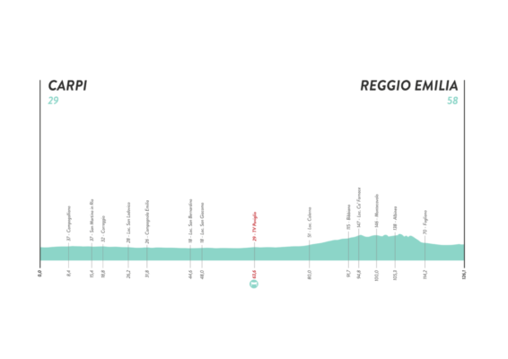 Tornano in scena le ruote veloci. Non ci sono GPM, in generale non ci sono difficoltà altimetriche lungo i 126 chilometri odierni: sarà una lunga attesa verso la volata finale.