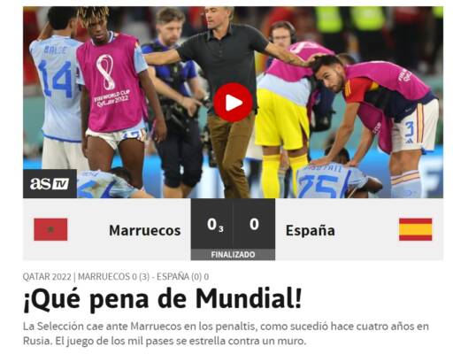 Non sorprende che la reazione dei media spagnoli rispetto a questo risultato si sia fatta sentire. Marca ha titolato: “Fiasco de una España mediocre“. AS ha calcato ancor più la mano: “Qué pena de Mundial“. Sport.es ed El Periodico hanno puntato il dito su come i rigori abbiano “ucciso” la Roja, mentre El Pais ha evidenziato quanto la Spagna abbia fatto poco per guadagnarsi il pass.