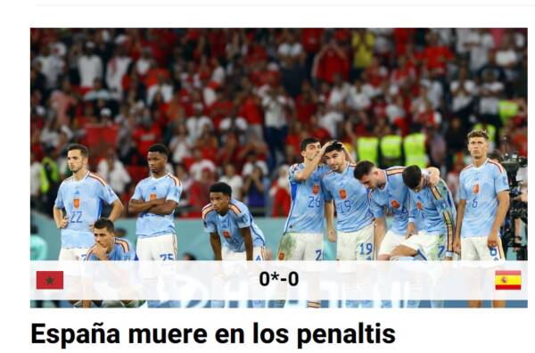 Un’uscita di scena che fa male. E’ terminata agli ottavi di finale l’avventura della Spagna di Luis Enrique nei Mondiali 2022 di calcio in Qatar. I rigori contro il Marocco sono stati letali alle Furie Rosse che, un po’ come era accaduto l’anno passato nella semifinale degli Europei contro l’Italia, non sono riuscite a trovare concretezza dal dischetto.