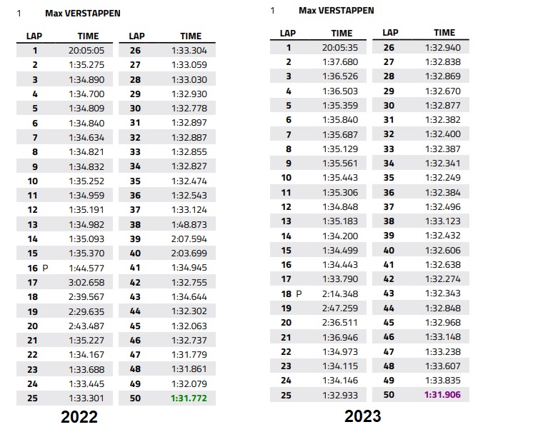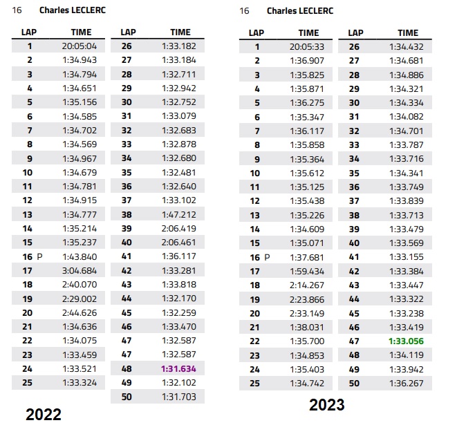 Tuttavia, confrontando il tutto, emerge che nei 20 giri “puliti” del secondo stint di gara Leclerc avesse una ventina di secondi di vantaggio con la F1-75. Una situazione critica con la SF-23 rafforzata dalla constatazione che Verstappen, nelle medesime tornate, sia stato più veloce quest’anno seppur di poco (margine di poco superiore al decimo al giro). Un’analisi comparativa che deve far riflettere la scuderia di Maranello.