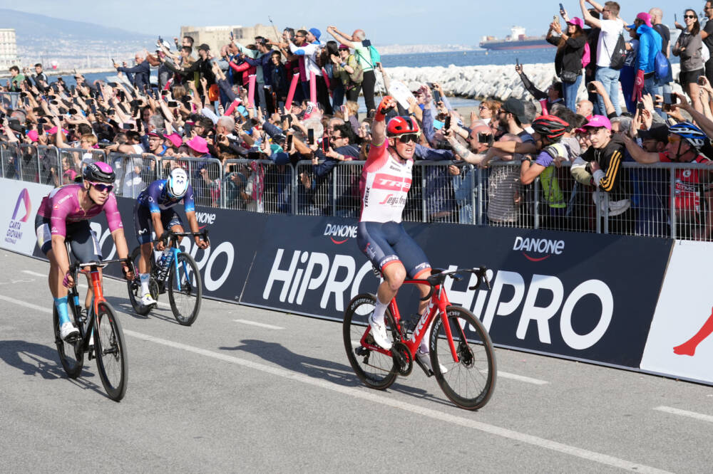 Mads Pedersen entra nel novero dei ciclisti capaci di vincere una frazione in tutti e tre i Grandi Giri. Il danese della Trek-Segafredo si toglie la ‘scimmia dalla spalla’ portandosi a casa la sesta tappa del Giro d’Italia, con partenza ed arrivo a Napoli, grazie ad una volata di potenza, bruciando allo sprint Jonathan Milan (Bahrain-Victorious) e Pascal Ackermann (UAE Team Emirates).