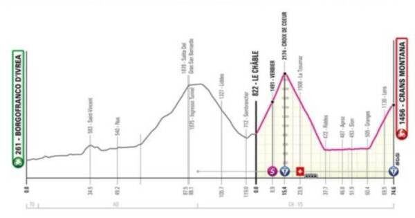 La tredicesima tappa del Giro d’Italia sarà solo di 74 chilometri. La nuova partenza è stata fissata per le 14.30 a Le Chable, mentre l’arrivo sarà sempre a Crans Montana. Un cambiamento totale, con il percorso che è stato tagliato di ben 125 chilometri, ma comunque sono rimaste le due salite del Croix de Coeur e quella al traguardo.