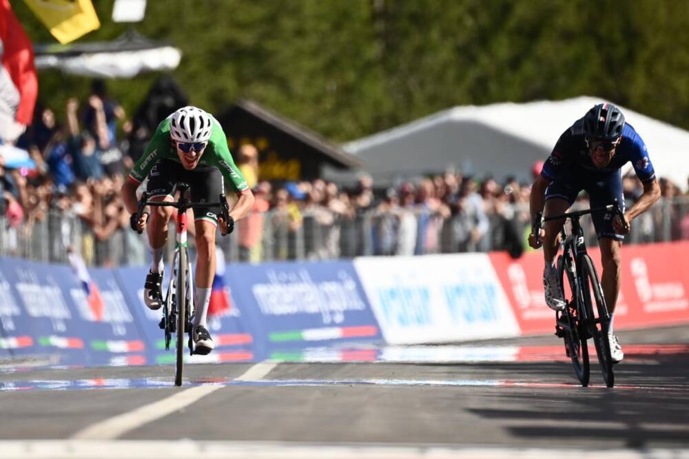 Il gruppo ha lasciato fare, con i fuggitivi che hanno continuato ad andare d’amore e d’accordo fino agli ultimi 35 chilometri. Pinot e Zana hanno fatto la differenza sulla salita di Coi, arrivando così a braccetto all’arrivo di Val di Zoldo, dove sul rettilineo finale il campione italiano è riuscito ad imporsi sul transalpino, che torna leader della classifica GPM grazie ai punti oggi conquistati.