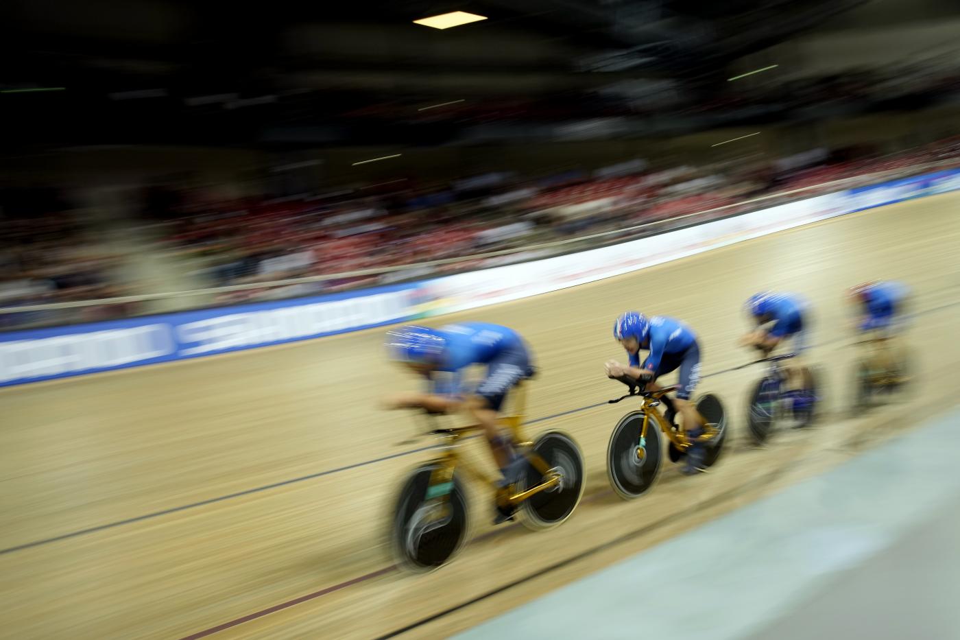 Il quartetto tricolore, lo stesso che ha trionfato alle Olimpiadi di Tokyo, con Filippo Ganna, Francesco Lamon, Simone Consonni e Jonathan Milan non è stato convincente nell’esordio, rischiando addirittura di non essere nel gioco per l’oro. 3’50″408, tempo molto alto rispetto agli standard e un pizzico di fortuna grazie alla caduta della Gran Bretagna che è rimasta fuori dalla lotta per il titolo.