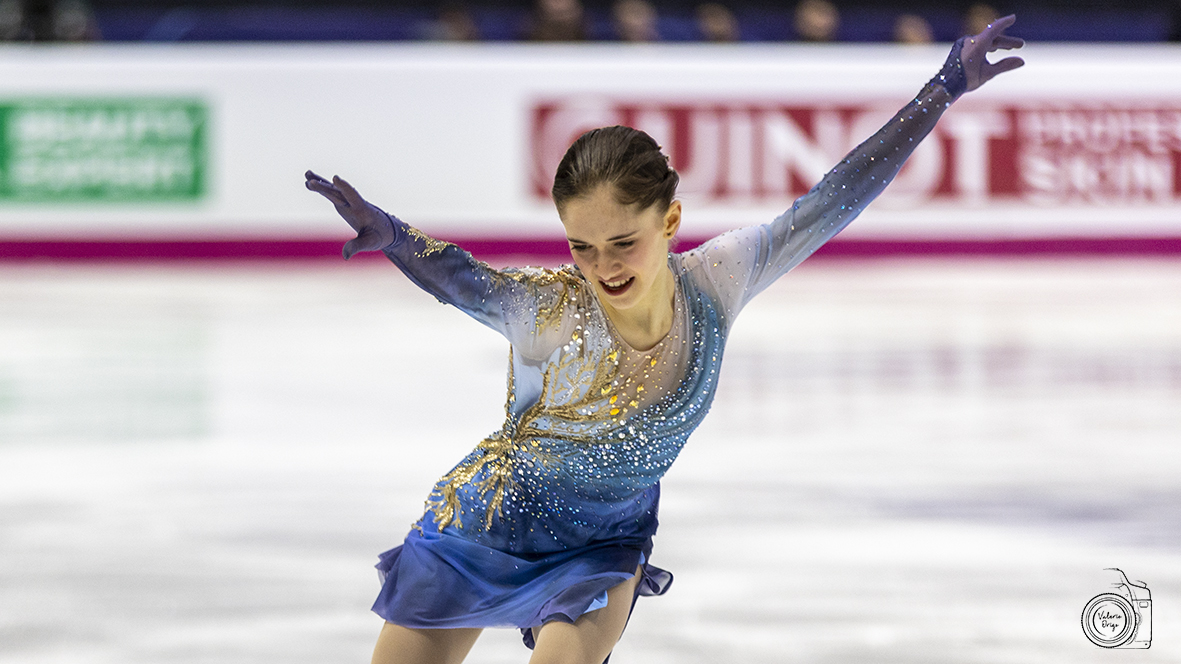 Esordio da urlo poi per la belga Nina Pinzarrone che ha chiuso la sua prima esperienza in una tappa del circuito della massima categoria conquistando una inaspettata seconda posizione grazie a una prestazione valutata 133.06 (72.69, 60.37) per il nuovo personal best di 198.80; un riscontro con cui ha superato ampiamente non solo la Vice Campionessa del mondo Haein Lee, scivolata al quarto posto dopo un libero viziato da tante rotazione al limite e da due errori di peso, ma anche la detentrice del titolo continentale Anastasiia Gubanova, solo sesta con un programma dal basso contenuto tecnico.
