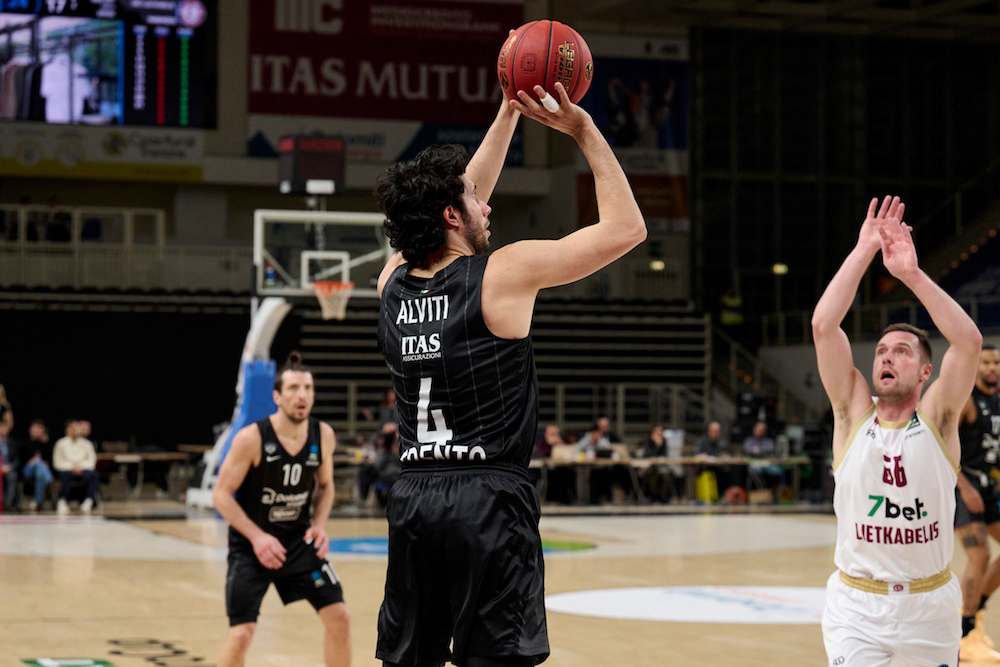 Pronti, via e Trento prova subito a scappare in più occasioni. La compagine lituana però resta attenta e rientra sempre, prima della tripla di Alviti in chiusura di primo quarto (20-17). Nel secondo periodo è ancora la squadra di casa che cerca l’allungo e stavolta ce la fa, salendo addirittura sul +12 (34-22) dopo una tripla di Baldwin e un canestro da due di Biligha. Poi nel finale di primo tempo il Lietkabelis ha una piccola reazione e accorcia fino al 35-27 prima dell’intervallo.