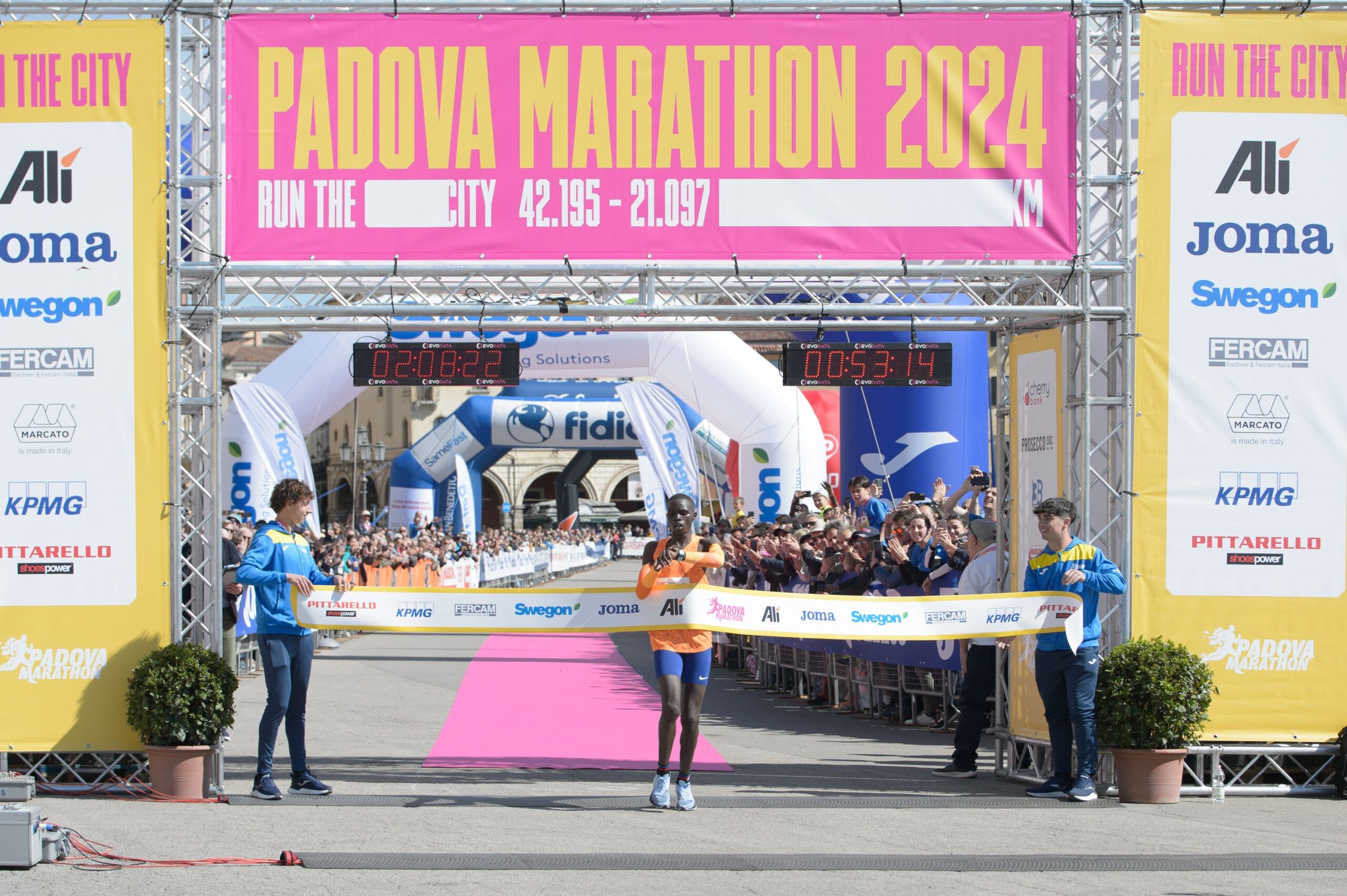 Il 2024 si consacra come l’anno dei record nell’ambito delle competizioni podistiche. La gara maschile di 42 chilometri è stata vinta da Timothy Kipchumba, atleta keniano, che ha abbattuto il precedente primato di 2 ore 09’02” risalente al 2011, con un tempo di 2 ore 08’22”. Inoltre, Morine Michira Gesare, un’altra etiope, ha stabilito un nuovo primato cronometrico nell’ora 08’30”, superando il tempo di 1 ora 09’06” registrato nel 2021 da Rahma. La partecipazione popolare è stata altrettanto significativa, con quasi 5.000 partecipanti alle prove agonistiche provenienti da 61 nazioni e oltre 20.000 partecipanti alle Stracittadine, portando il totale dei partecipanti alla Padova Marathon 2024 a almeno 25.000 persone.