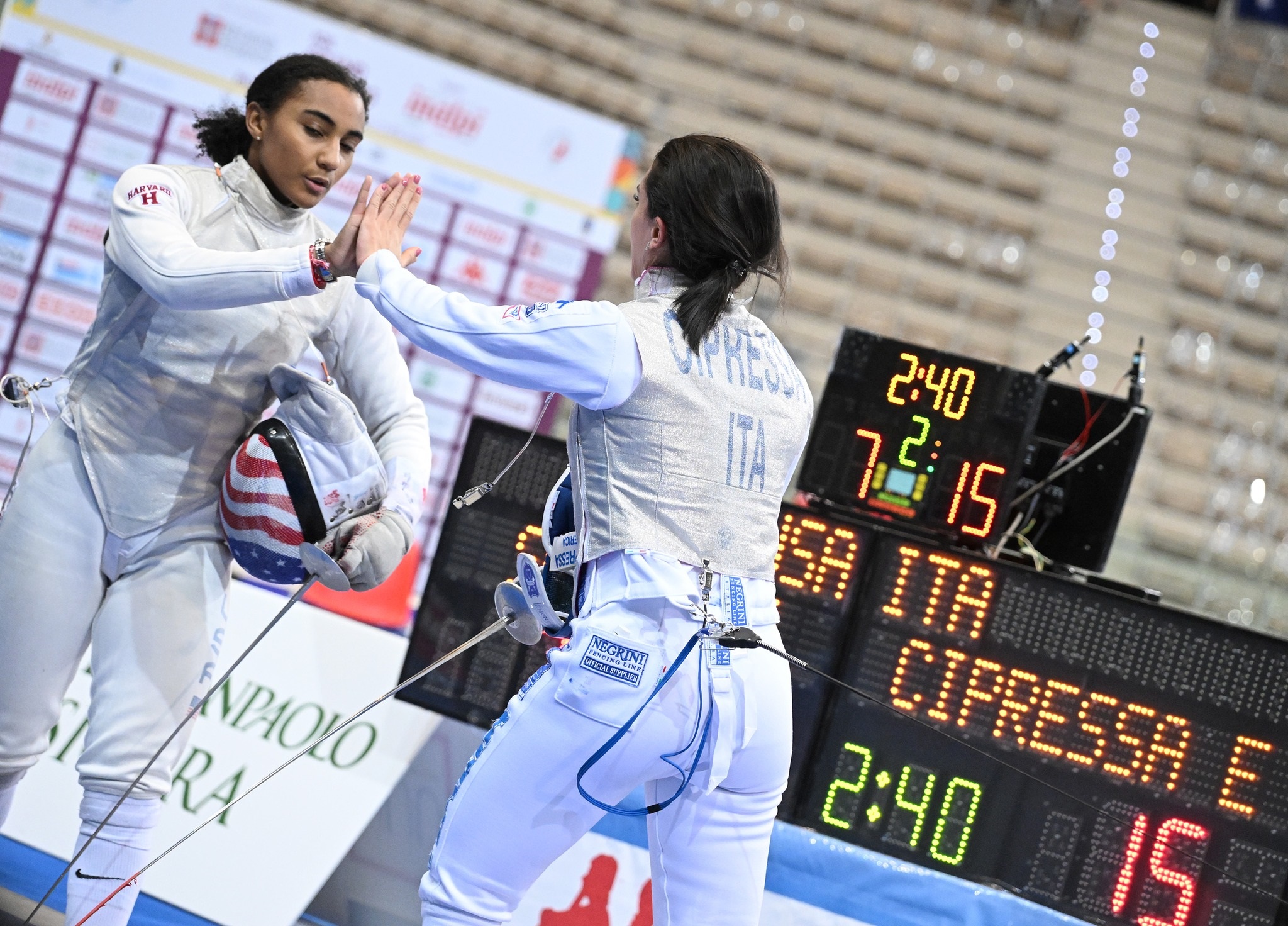 Dopo la fase a gironi altre tre tiratrici tricolori hanno staccato il pass per i trentaduesimi di finale: Anna Cristino, Irene Bertini ed Erica Cipressa. Per le prime due percorso netto e giornata perfetta, sei incontri disputati e altrettante vittorie incamerate. Per Cipressa invece una sola sconfitta, ma in totale ben 29 stoccate messe a segno e appena 12 subite, con un differenziale di +17 che le fa saltare il tabellone preliminare.