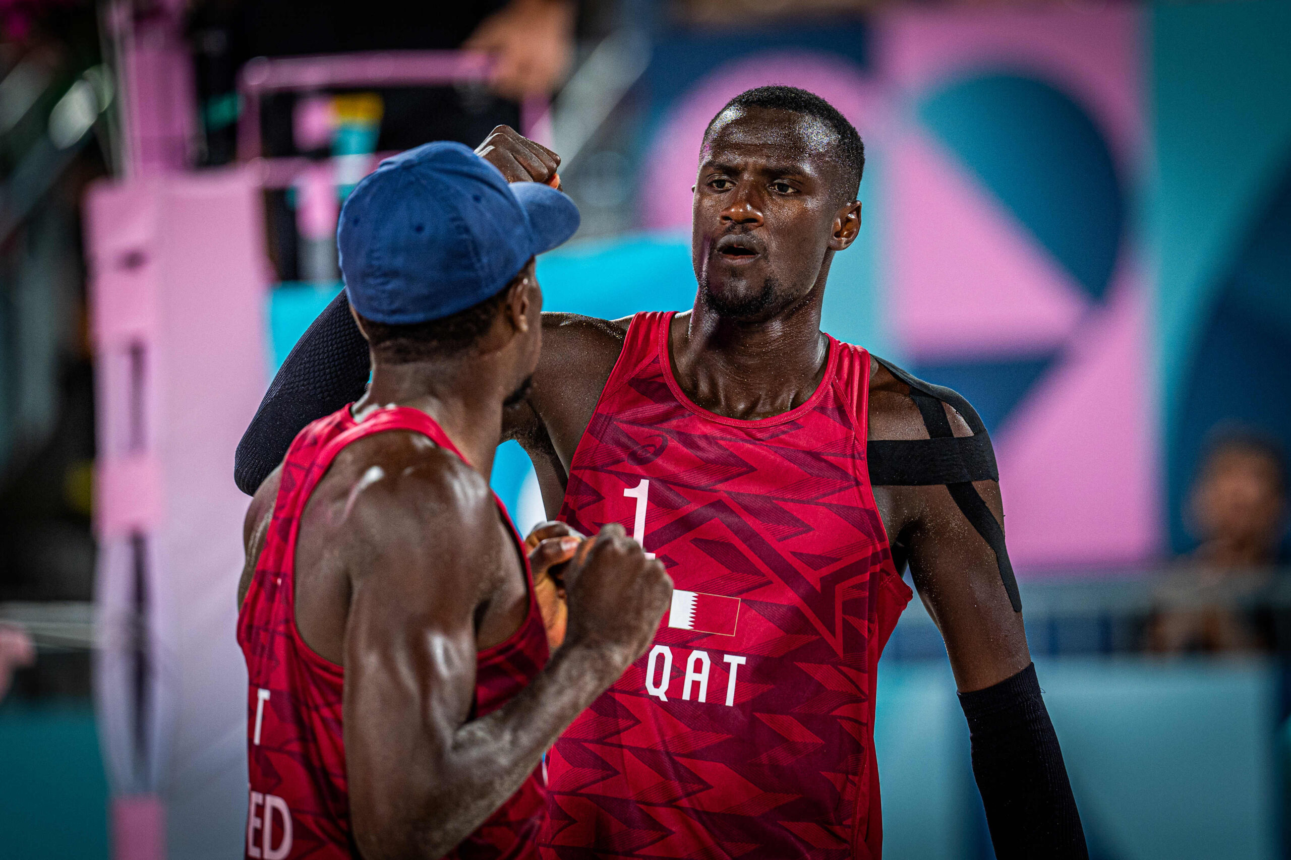 Nell’altro incontro Cherif/Ahmed riescono a superare in due set gli statunitensi Partain/Benesh, giustizieri di Nicolai/Cottafava. Una dura lezione per gli statunitensi, che tengono il ritmo degli asiatici per poco nel primo set, poi Cherif/Ahmed alzano il ritmo e vincono 21-14. Nel secondo set già dalle prime battute il match si incanala bene per i qatarini, che hanno il merito di tenere a distanza di sicurezza gli avversari fino al 21-16 conclusivo.