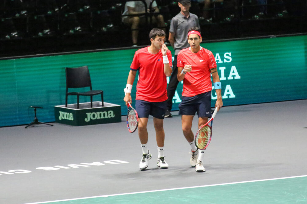 Nel doppio, decisivo soltanto ai fini del tie odierno, Tomas Barrios Vera e Nicolas Jarry superano Norbert Gombos e Lukas Klein per 6-4 6-7 (3) 7-6 (5) in due ore e 49 minuti di gioco, griffando così il punto della vittoria per il Cile. Nel primo set gli slovacchi annullano tre palle break nel sesto game, poi a loro volta non ne sfruttano due nel settimo. Nel nono gioco i cileni cancellano un altro break point, poi, però, nel decimo sono i sudamericani a centrare il break a trenta che vale il 6-4 in 43′. Nella seconda frazione gli slovacchi subiscono il break ai vantaggi nel game d’apertura e lo difendono fino al decimo game, quando vanno a servire per il set sul 5-4. Puntuale, però, arriva il controbreak dei cileni, che trovano il 5-5, per poi passare a condurre sul 6-5. Nel dodicesimo game il Cile si procura tre match point consecutivi, ma la coppia slovacca risale dallo 0-40 e porta la contesa al tiebreak: dal 2-3 Gombos e Klein vincono 5 punti consecutivi e pareggiano i conti sul 7-6 (3) in 64 minuti. Nella partita decisiva il primo vero sussulto arriva nel dodicesimo game, quando la coppia cilena deve annullare un match point ai cechi, prima di poter giungere ad un giusto epilogo al tiebreak. Scambio di minibreak tra terzo e quarto punto, poi il Cile dal 4-4 vince due punti consecutivi e guadagna due match point sul 6-4. I sudamericani mancano il primo, col servizio a disposizione, ma convertono il secondo, in risposta, e conquistano la vittoria sul 7-6 (5) in 62′. Vengono giocati nel complesso 219 punti, dei quali 112 vinti dai sudamericani e 107 dagli europei. Per i cileni 22 vincenti e 10 errori gratuiti, contro il bilancio di 19-20 degli slovacchi.