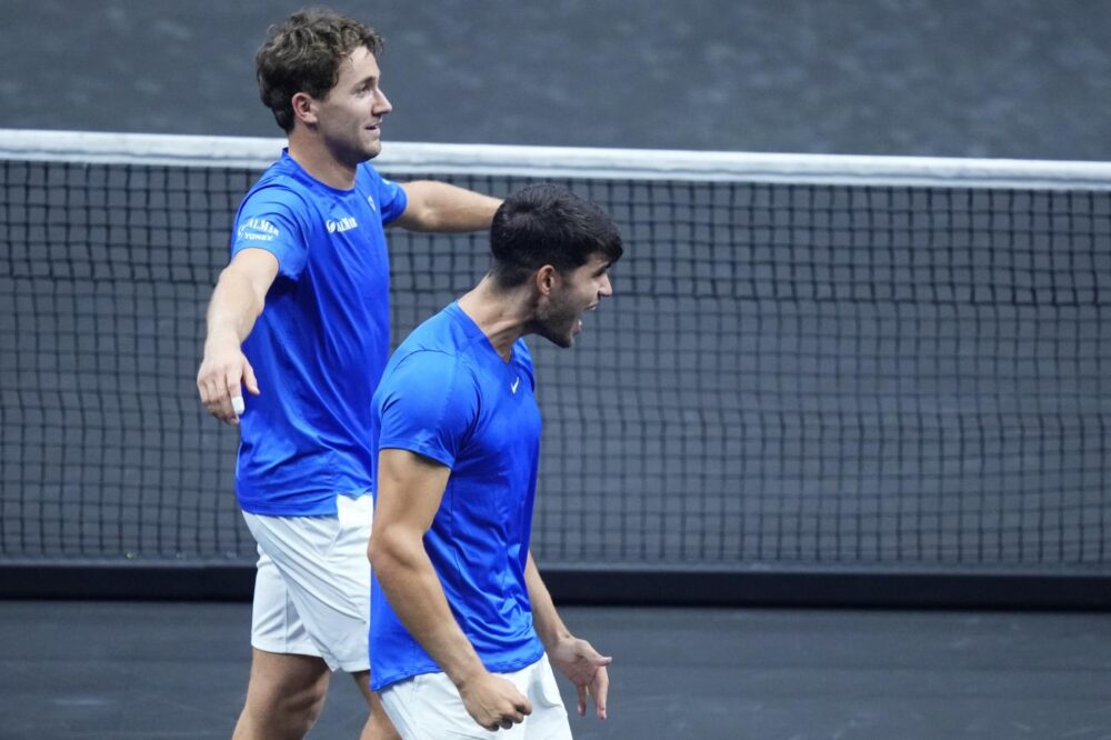 A suonare la carica per l’Europa in apertura di giornata sono proprio Alcaraz ed il norvegese Casper Ruud, che superano in due set gli statunitensi Ben Shelton e Frances Tiafoe, sconfitti per 6-2 7-6 (6) in un’ora e 43 minuti di gioco. La coppia europea, dopo aver dominato il primo set, risolto in 38 minuti con due break nella parte centrale, nella seconda frazione deve ricorrere al tiebreak, vinto in volata per 8-6, per abbattere la resistenza dei nordamericani.
