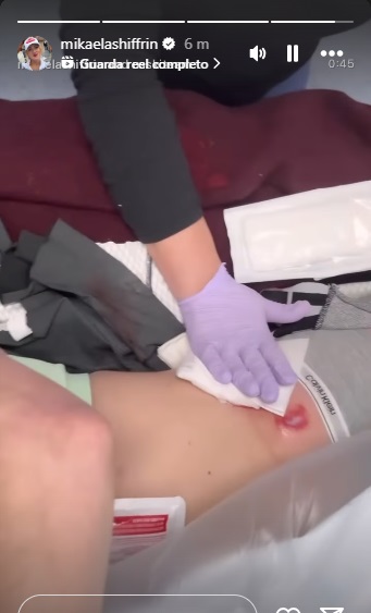 La campionessa statunitense ha pubblicato una story su Instagram, cancellata dopo pochi minuti, nella quale ha mostrato la medicazione in atto per trattare una brutta abrasione dovuta alla caduta di Killington. Non si conoscono ancora le conseguenze dei traumi. Il video, in versione integrale, attualmente risulta però ancora visibile su X.