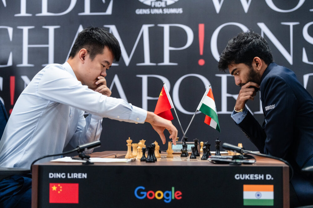 E sarà l’indiano a possedere il Bianco per questa volta, la quinta nel confronto che vale l’iride. Una sfida che nessuno pensava così combattuta all’inizio, e che invece sta vivendo di momenti al limite della drammaticità e dei capovolgimenti di fronte, con Ding che se la gioca sul filo tra l’esperienza e le emozioni e Gukesh a metà tra il calcolo che va e le situazioni in cui non riesce a convertire.