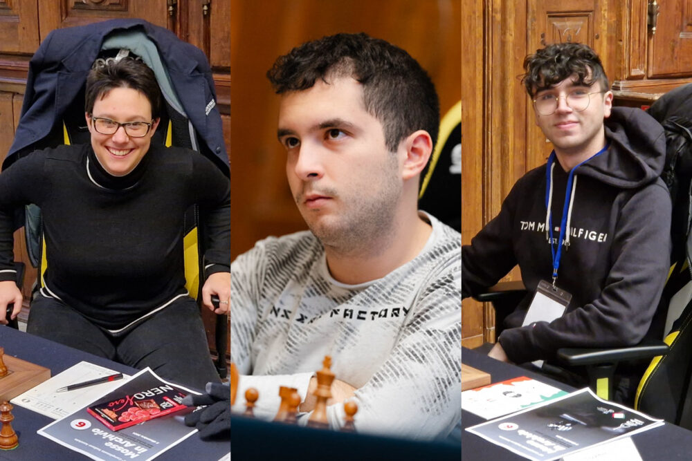 Nel femminile a portare a casa il proprio terzo titolo tricolore è Marina Brunello, che con un brillante tatticismo in cui fa cadere Melissa Maione, poco dopo l’uscita dall’apertura, riesce a infilarsi in un finale vinto di Donna contro Torre e 5 pedoni a testa nel giro di 27 mosse. L’abbandono consegna alla trentenne di Lovere un altro alloro importante nella sua traiettoria scacchistica, conquistato con 6 punti su 7. Mezzo punto più indietro c’è Olga Zimina, che batte Giulia Sala con un poderoso attacco sul lato di Re in uscita dall’apertura con il Nero. Silvia Bordin avrebbe potuto anche andare per la vittoria in un finale superiore, con il Nero, contro Elisa Cassi, ma le basta la patta per chiudere terza e, con 4,5 punti, prendersi lo scettro Under 20 femminile assegnato internamente agli Assoluti femminili. Infine, vittoria “da saliscendi”, considerato l’andamento della partita, di Enrica Zito su Valeria Martinelli. Classifica finale: Brunello 6, Zimina 5,5, Bordin 4,5, Cassi 3,5, Zito e Sala 3, Martinelli 1,5, Maione 1.