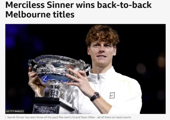 LA BBC ha definito Sinner come “Merciless, ovvero spietato o senza pietà, nel suo modo di fare la doppietta a Melbourne e di battere Zverev. Nel pezzo in questione si è analizzato in particolare la capacità dell’altoatesino di giocare sempre al meglio i punti importanti.