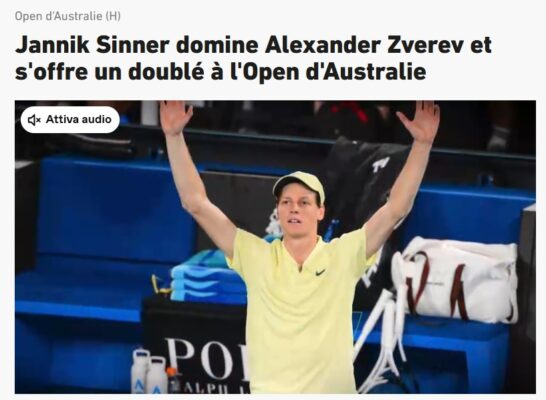 Su L’Equipe, è stato definito l’andamento dell’atto conclusivo a Melbourne: “Jannik Sinner domina Alexander Zverev e fa doppietta agli Australian Open“. La testata francese, dunque, fa leva sul fatto che il risultato nella partita in questione non sia mai stato davvero in discussione.