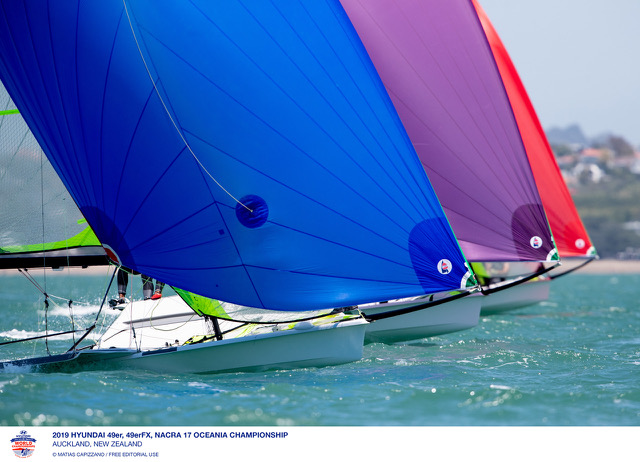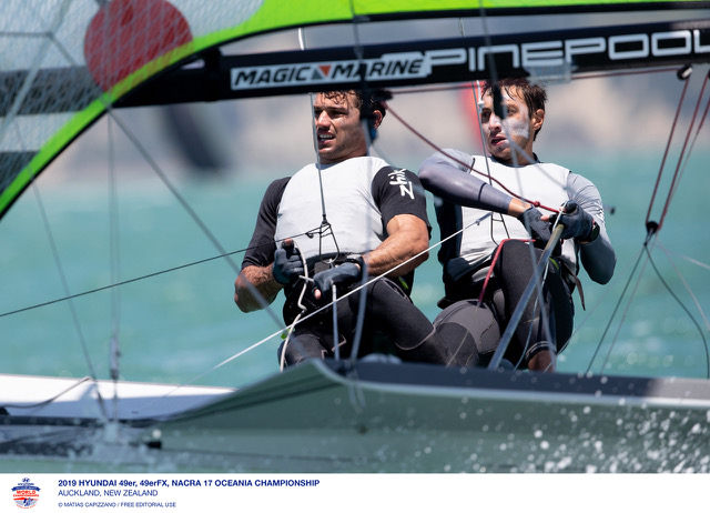 Il campo di regata di Auckland si conferma complicato dopo la prima giornata di Golden Fleet dei campionati mondiali 2019 Nacra 17 e 49er. Vento irregolare...