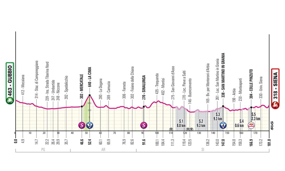 La nona tappa dell’edizione numero 108 del Giro d’Italia di ciclismo su strada, la frazione con partenza da Gubbio ed arrivo a Siena dopo 181 km,...