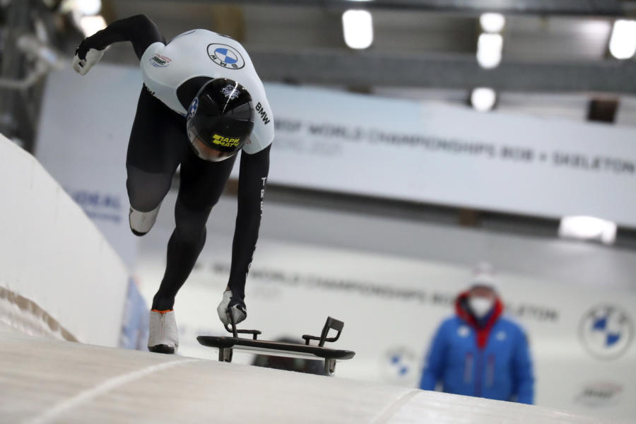 Comanda Alexander Tretiakov dopo le prime due manche dei Campionati Mondiali di skeleton 2021. Sul budello di Altenberg (Germania) i padroni di casa hanno messo in...