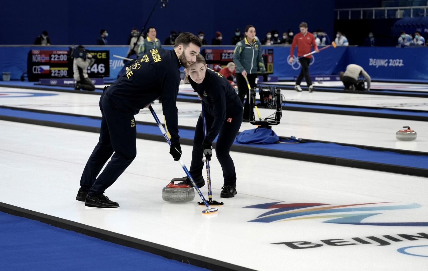 Si è appena conclusa la quarta sessione al National Acquatic Center, impianto sportivo che sta ospitando le prove di curling, specialità doppio misto, delle Olimpiadi Invernali...