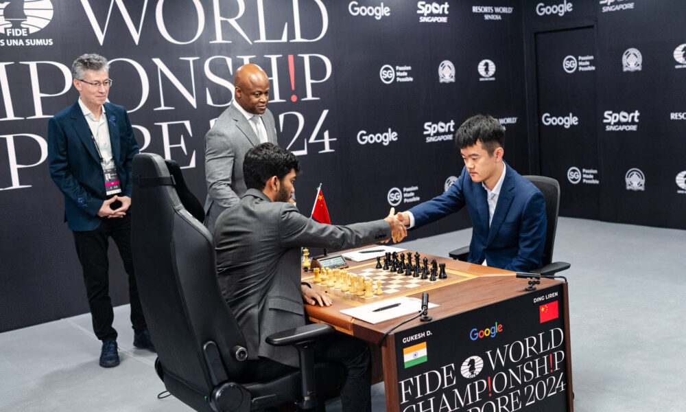 CLICCA QUI PER AGGIORNARE LA DIRETTA LIVE BIANCO: Gukesh; NERO: Ding Liren 13:02 L’appuntamento è dunque per domani ancora alle ore 10:00. Un saluto a tutti...