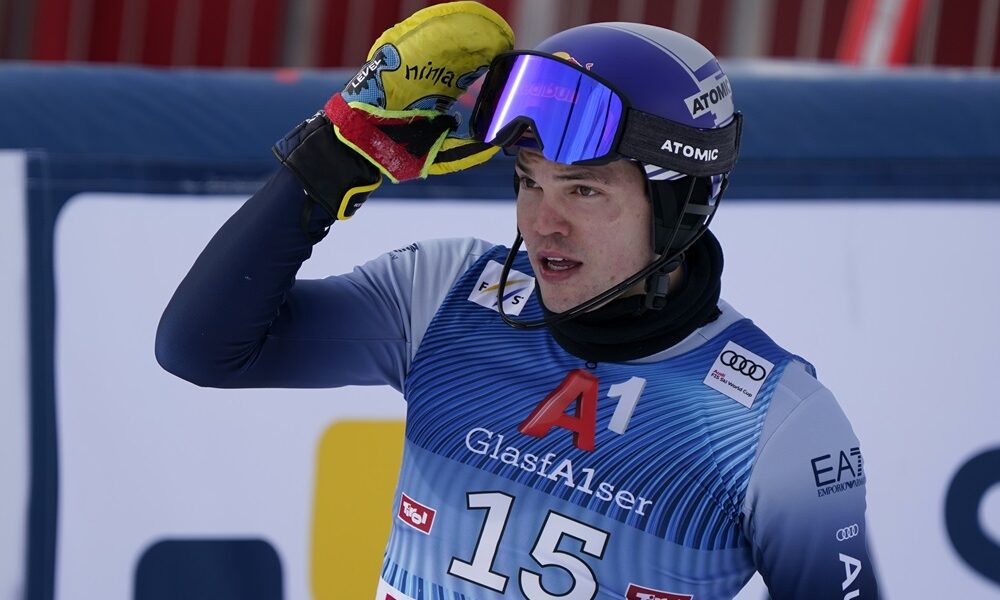 L’austriaco Marco Schwarz rimonta dalla sesta posizione della prima manche dello slalom speciale maschile sulle nevi di Madonna di Campiglio, in Italia, valido per la Coppa...