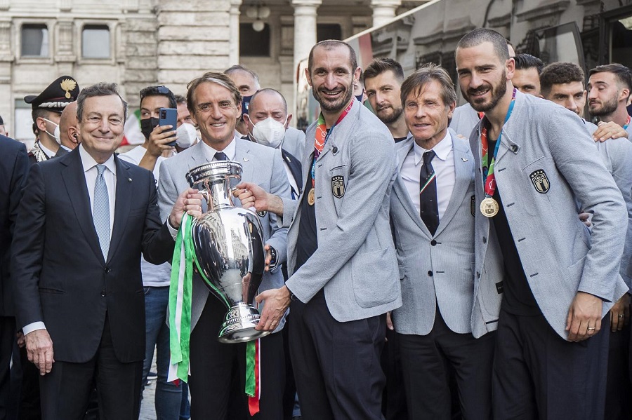 Cala il sipario sull’incontro a Palazzo Chigi tra il premier Mario Draghi, la Nazionale italiana di calcio, Matteo Berrettini e i rappresenti dell’Italia Under23 agli Europei...