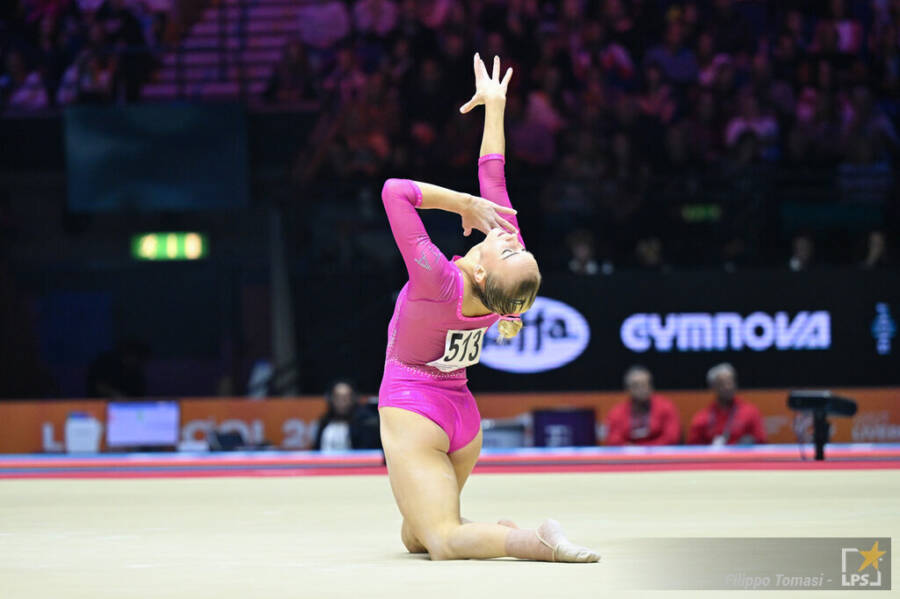 Jessica Gadirova si è laureata Campionessa del Mondo al corpo libero, mandando in visibilio il caloroso pubblico di Liverpool. La britannica ha offerto un esercizio rimarchevole...